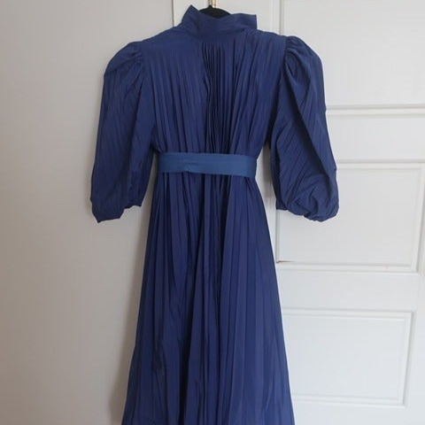 Dress up your little girl for festive occasions in this Victorian pin-tuck pleated high collar dress. Complete with a ribbon belt that can be worn with the dress, but is also detacahable if they would like to wear it without. This delightful Puff-Sleeve dress is suitable for even the most elegant occasions in its soft taffeta. It has all the incredible details that make it perfect for everything, from dinner with the family to twirling on a dance floor. Crush pleated throughout for touches of extra movement. It's a showstopper!